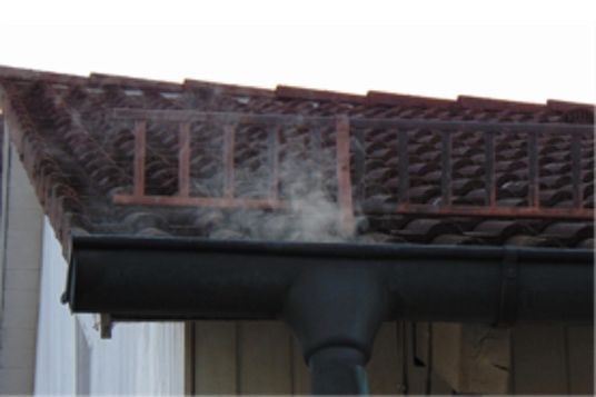Der Nebel, den die Nebelmaschine erzeugt, wird durch einen Ventilator und Luftschlauchleitungen in die Haltung gesprüht. Dies wird solang ausgeführt bis es an den dementsprechenden Stellen, wie zum Beispiel Dachrinnen, Entlüftungen, Hofabläufen, Birkorinnen, Schächten usw. anfängt zu rauchen oder nicht. So oder so wird dies dann mit der Digitalkamera festgehalten und mit dem Foto wird dann ein Bericht in Papierform erstellt. Außerdem werden die im Plan eingezeichneten Anschlüsse dann überprüft, ob diese ordnungsgemäß angeschlossen sind, da es zum Beispiel vermieden werden sollte, Schmutzwasser ins Regenwasser zu leiten.